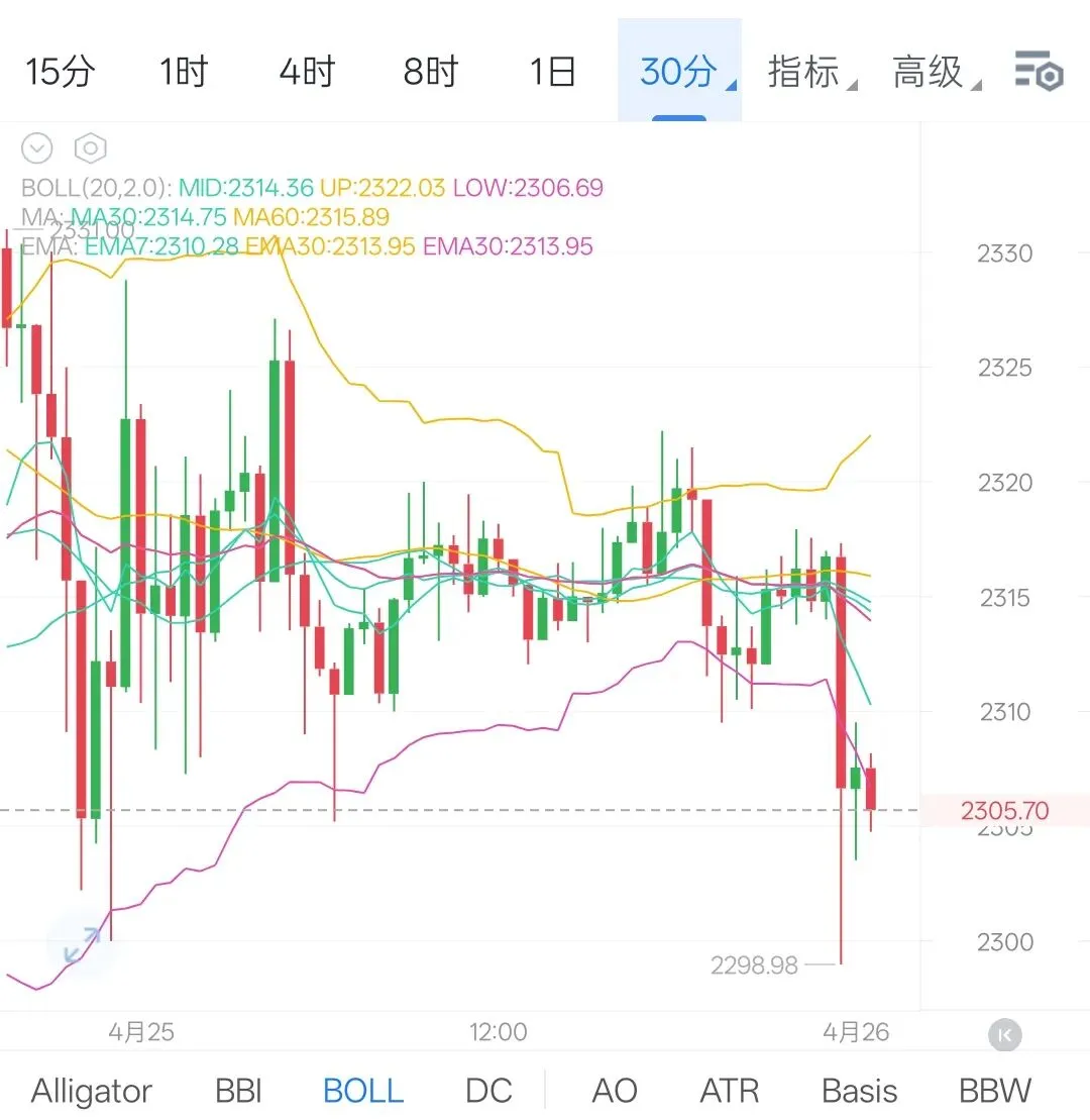 大饼日内波动相对收敛,凌晨阶段行情自78000上方回落,随后在77500一带整理,早间进一步回踩至77200附近止跌企稳。此后进入白磐,行情没有走出单边,而是围绕77200-77600区间反复震荡,多空来回拉扯,行情多次上探77500上方但均未能形成有效延续,回落同样缺乏连续性,整体呈现横向整理结构。午后至晚间,行情重心略有上移,一度反抽至77800附近,但依旧未能站稳,随后再次回到区间内部运行。临近午夜,行情小幅回落至77200一线,整体来看全天节奏以区间震荡为主,波动虽有起伏,但结构并未打开,更多体现为高位整理后的反复消化。以太走势基本同步,凌晨冲高至2328后回落,早间最低试探至2300下方,随后白磐维持在2310-2320区间反复震荡,晚间反抽至2320附近承压回落,最低触及2298后小幅收回,全天同样是窄幅震荡格局。