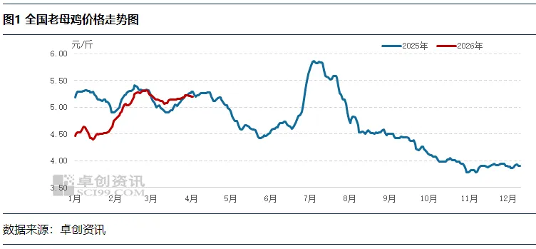 【导语】 4月全国老母鸡价格整体窄幅震荡,走势平稳。受鸡蛋价格走高支撑,淘汰节奏有所放缓,但前期延淘与高补栏导致出栏量增加,叠加低价猪肉替代效应,价格上涨受限。预计5月老母鸡供应将集中释放,叠加蛋价支撑减弱、节后需求平淡,供需格局转为供增需弱,价格大概率弱势承压下行。