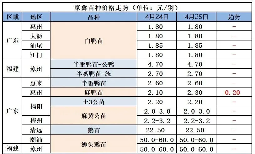 4月25日大种麻鸭苗报价(元/羽) |