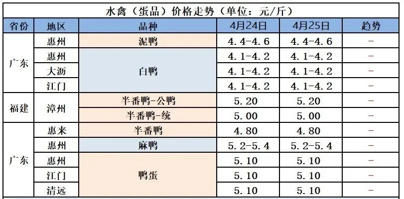 4月25日南方桂柳广东区域毛鸭报价(元/斤) |