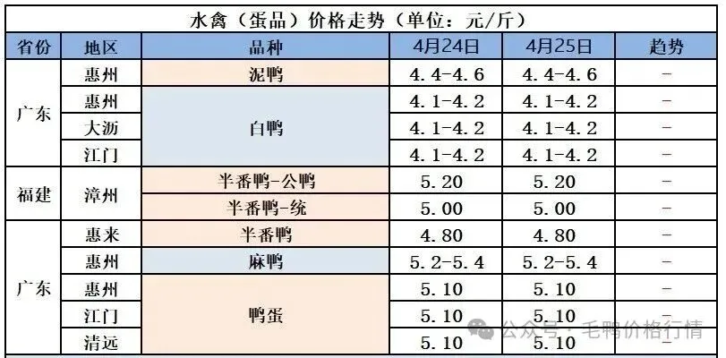 4月25日南方桂柳广东区域毛鸭报价(元/斤) |