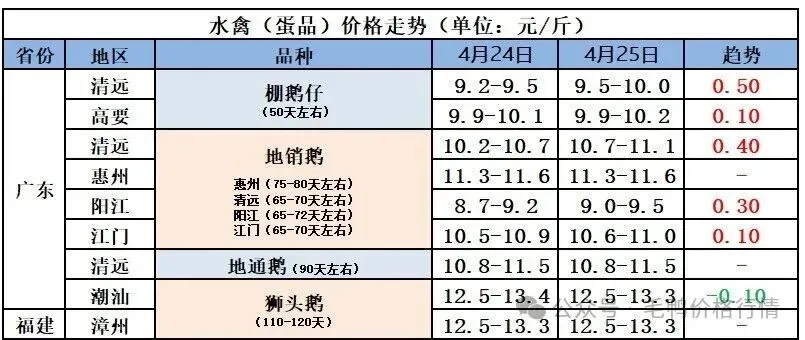 备注: 1、报价为樱桃谷父母代大苗的报价; 2、报价仅供参考,实际成交或受多因素影响有不同; |