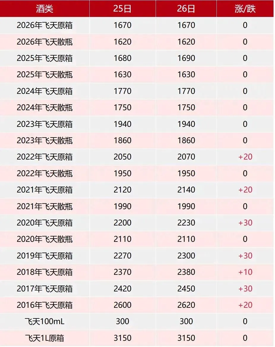 >全线上涨!4月26日茅台行情价.