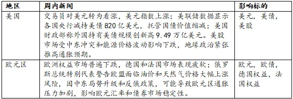 美国总统特朗普宣布对向伊朗提供武器的国家征收50%关税,立即生效无豁免。特朗普表示美军将在未来几周内对伊朗进行猛烈打击,导致国际原油价格上涨,俄罗斯石油出口能力因袭击减少20%。特朗普声称推迟对伊朗发电站的打击五天,伊朗否认沟通,交易员预计美联储年底前加息20个基点。特朗普考虑占领哈尔克岛向伊朗施压,国际能源署署长警告恢复海湾石油输送需六个月,美联储理事鲍曼预计2026年降息三次。美联储3月会议纪要显示多数官员担心战争损害劳动力市场需降息,但强调通胀风险可能加息,外国持有美国国债达纪录新高9.49万亿美元。后续需关注地缘政治紧张和关税政策对经济与市场的潜在冲击。