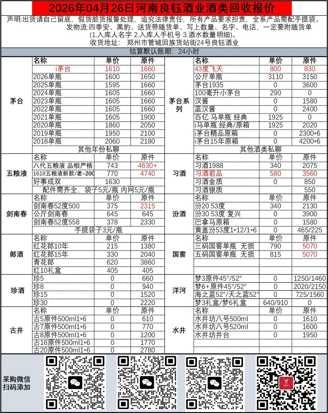 地址变更:收货地址: 郑州市金水区陇海快速路与货站街交叉口东北角 良钰酒业