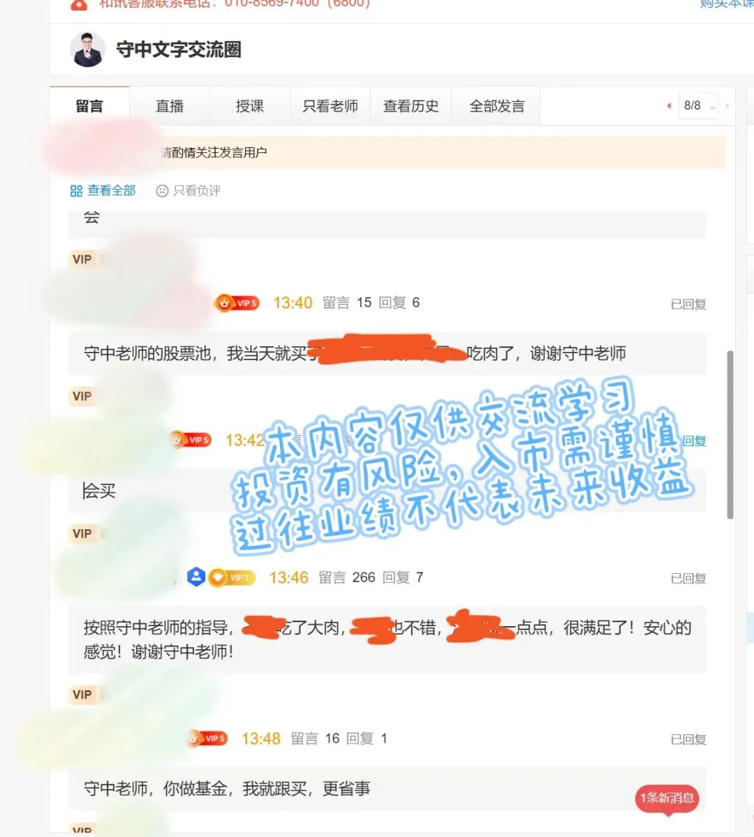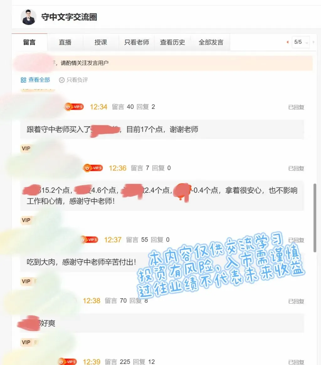 最近市场调整,课堂学员却逆势收获大肉,来自于守中老师在关键时候给出的股票池,给了课堂学员一颗定心丸。