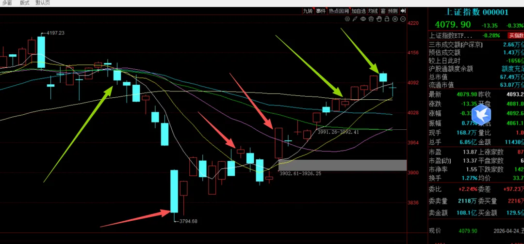 从短期视角上,4月8日放量是右侧确认,共振的是光模块和算力,次日算力大分歧,光模块持续,从而确认光模块是主线,核心股票是东山精密。创业板在光模块和宁德时代带领下创出新高,这也是我们一直以来非常喜欢的模型,也就是大跌的时候震荡保持形态不破位,等待时机一到,别人爬坑,他已经创出新高。所以对于指数交易选手,当然是优选创业板。