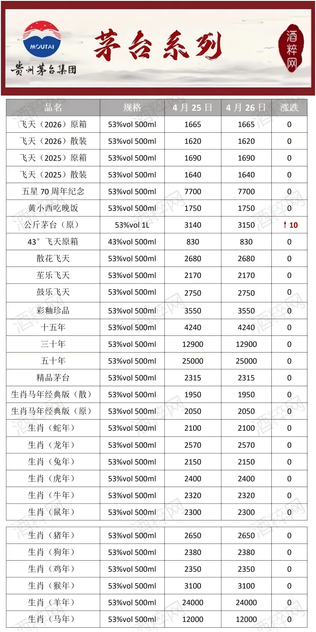 当前位置:首页>行情>酒粹•日价|4月26日全国名优酒价格行情