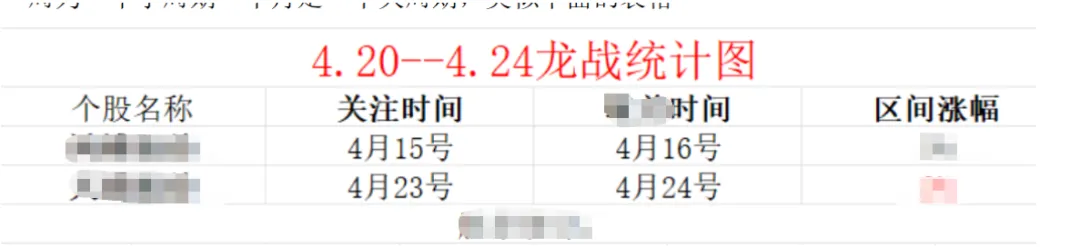 以后每一次龙战的标的,我都会做一个表格给大家,统计一个周期龙战