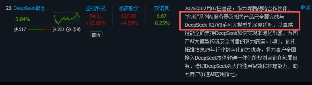 很简单,拓维在deepseek适配华为这套体系里面直接参与,直接受益