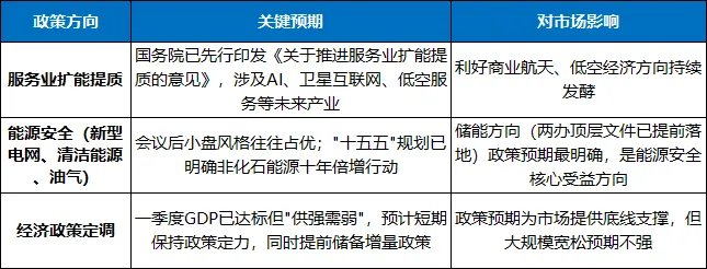 4月底政治局会议是影响下周市场方向的首要核心变量。机构普遍预计会议定调应偏积极,重点关注三大方向: