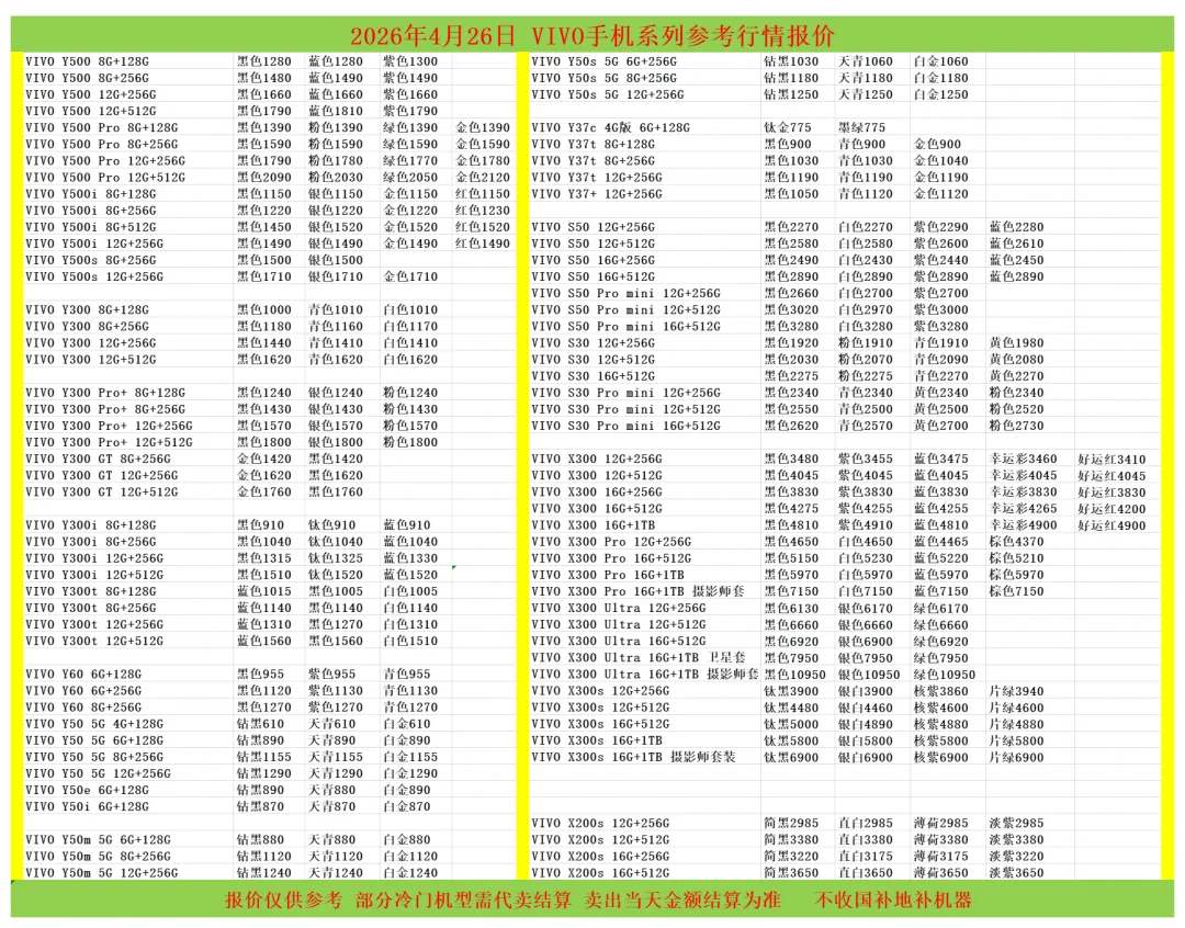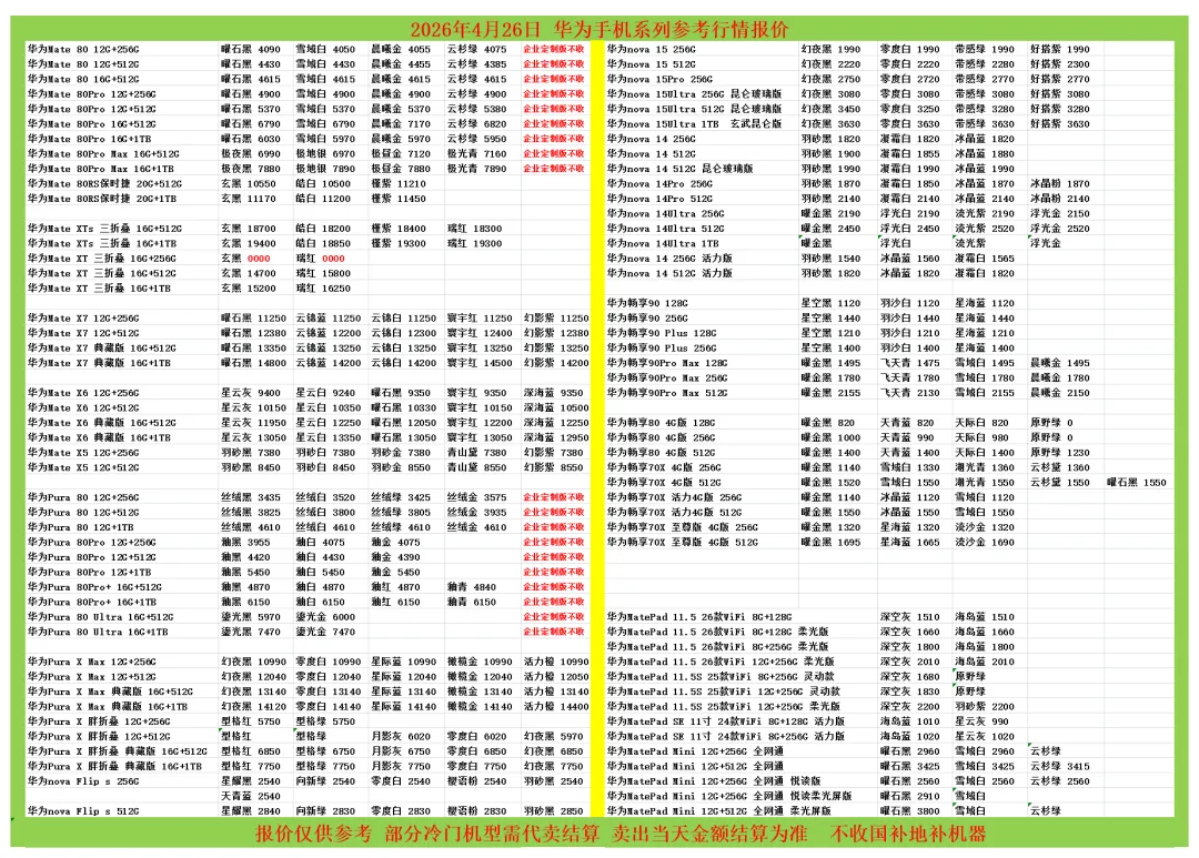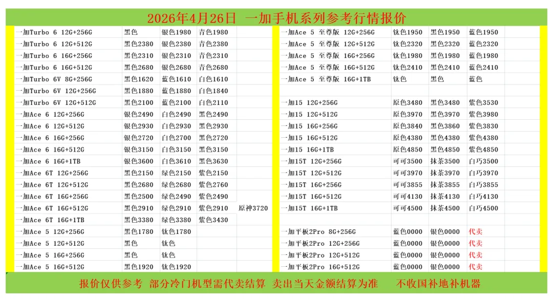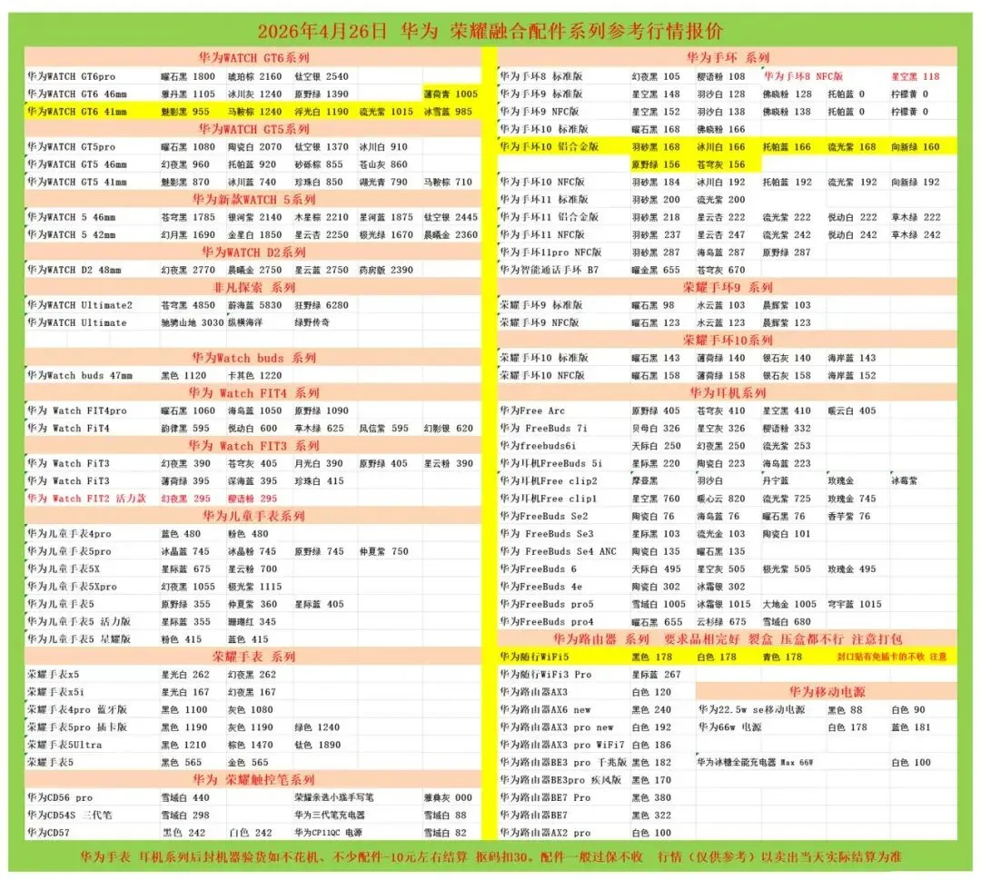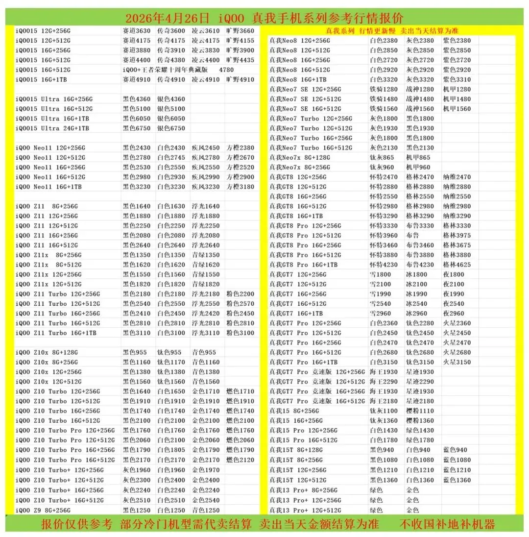 (1)二级市场为自由交易市场,价格实时波动,可能每个小时的卖价都不一样,此报价为华强北市场收货参考行情,实际结算价见公众号:鸟哥撸货数码结算价。