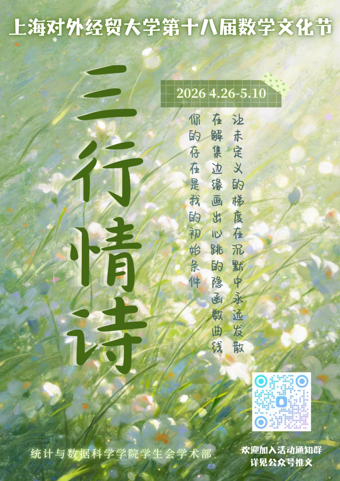 • 由主办方组建评审小组,采用百分制全程秉持公平公正原则进行评分:结合数学内容(40%)+情感真实、文采优美(40%)+创新特色(20%)