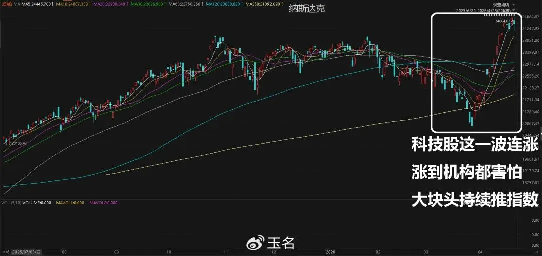 这一次全球股市新高,是不是提前开香槟?美股有多牛?市场已经创造了纳指有史以来最长的连涨记录了。标普500本月迄今累涨9%,为2020年以来最大单月涨幅。这是同等幅度反弹中,历史速度最快的一次。科技七巨头(Mag7)自3月27日以来未现单日下跌,期间累涨约19%。而实物原油价格仍处于高位,反映出航运路线受阻、油轮运费高企以及库存耗尽等现实问题,高盛的分析师认为这些问题需要数周乃至数月才能正常化。但原油期货已经大跌,一度回到80美元/桶,这是期现倒挂了。市场认为最可能的结果是逐步降级,但尾部风险非常大。这是一次真实的通胀冲击。