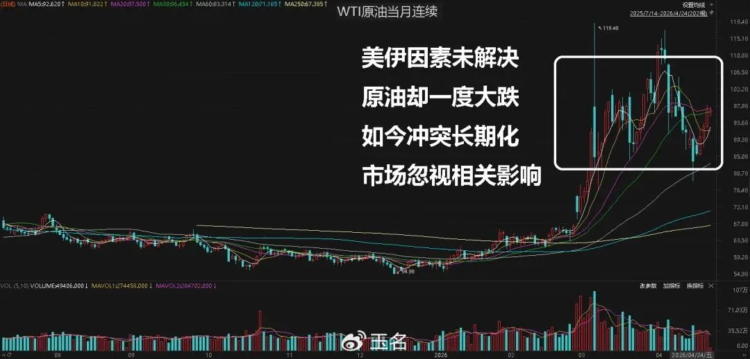 4.17日晚上伊朗说开放海峡,美股暴涨原油暴跌,4.18日伊朗又关闭了海峡,双方对抗从未真正停止过,而霍尔木兹海峡也是没有真正放开过。但这期间股市似乎已经不理会这些了,都是连涨的状态,原油期货倒是跌了一波,这是值得警惕的。4.20日过了停火协议期,如今无限延长,同时5.1日是特朗普的最后期限,由于《战争权力法》60天结束大限将特朗普逼入死角:授权、撤军还是公然违法?战费耗资300亿、补充拨款高达千亿,共和党内部裂痕悄然浮现——这个原本只存在于法律文本中的日期,正成为全球市场必须盯紧的政治坐标。