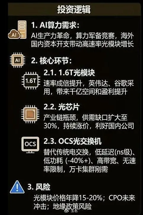 之所以分析这个因素,是源于“科技VS资源”的热点结构分化,很可能发生逆转。近期最热的是光模块,但近期已经明显出现了调整,其实就是最传统的A股讲故事模式,要么早信,要么不信。当然,有股民说,不信一路涨,怎么办?不属于自己的不要觊觎,这就是最好的解释,没有可操作度,再好也与自己无关。有了这个因素,接下来,我们进一步分析相关热点变化的因素,供大家研究。