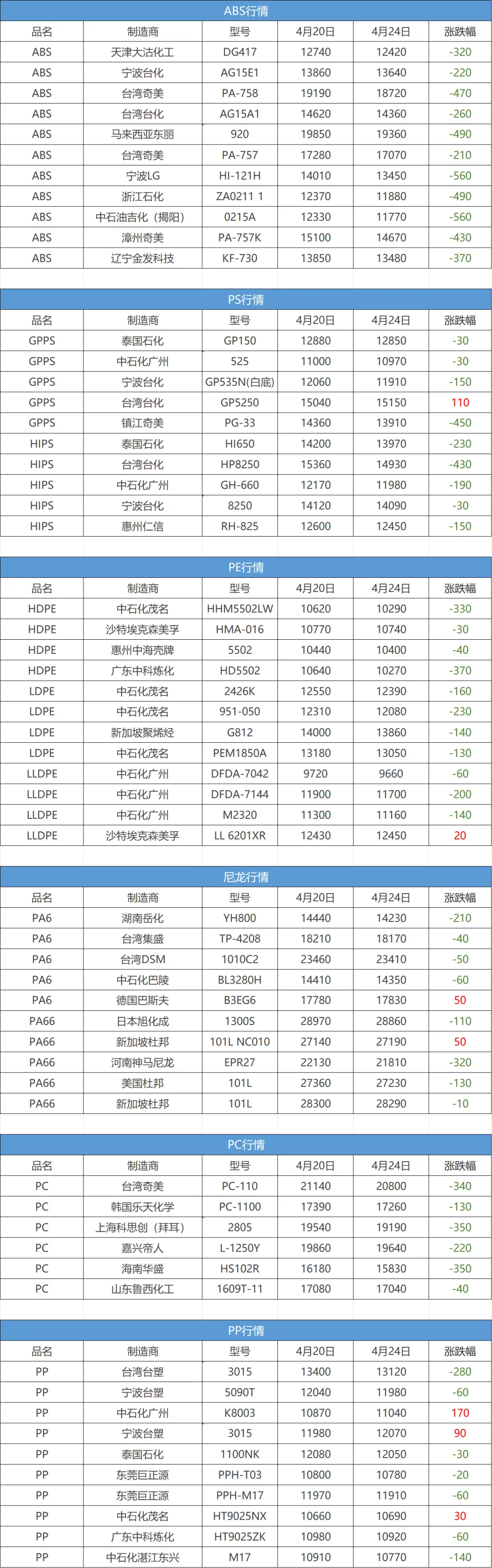 陶氏化学已于4月宣布提高聚乙烯价格,每磅上调30美分(折合每吨661美元),涨幅约60%,并计划在5月每磅再涨20美分(折合每吨441美元)。两轮涨价落地后,聚乙烯合计涨幅接近100%,累计每吨涨价超1102美元,原料涨价力度显著。