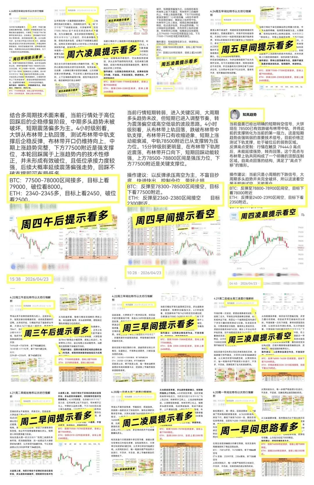 当有人在暴跌的恐慌与横盘的焦躁中来回摇摆时,知岚实磐帐户净值,已随着对每一个节奏的精准踏点,实现了又一周的稳健攀升。本周整体走了一轮先抑后扬、高位震荡的行情。周初大饼从73669低点开始反弹,多头逐步收复失地,周三周四连续上攻,一度触及79444高点;但放量过后动能衰减,周五围绕78300-77400区间宽幅拉锯,周末进入高位整理模式,整体围绕77700-77100窄幅区间反复拉锯。整周来看,大周期的上涨趋势结构保持完整,后半周的调整属于健康的消化阶段。