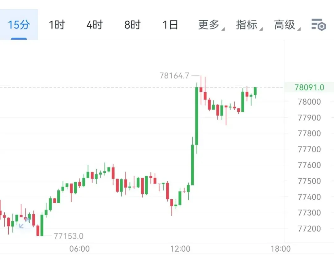 BTC:回踩77300-77000区间接多,目标上看78500附近。