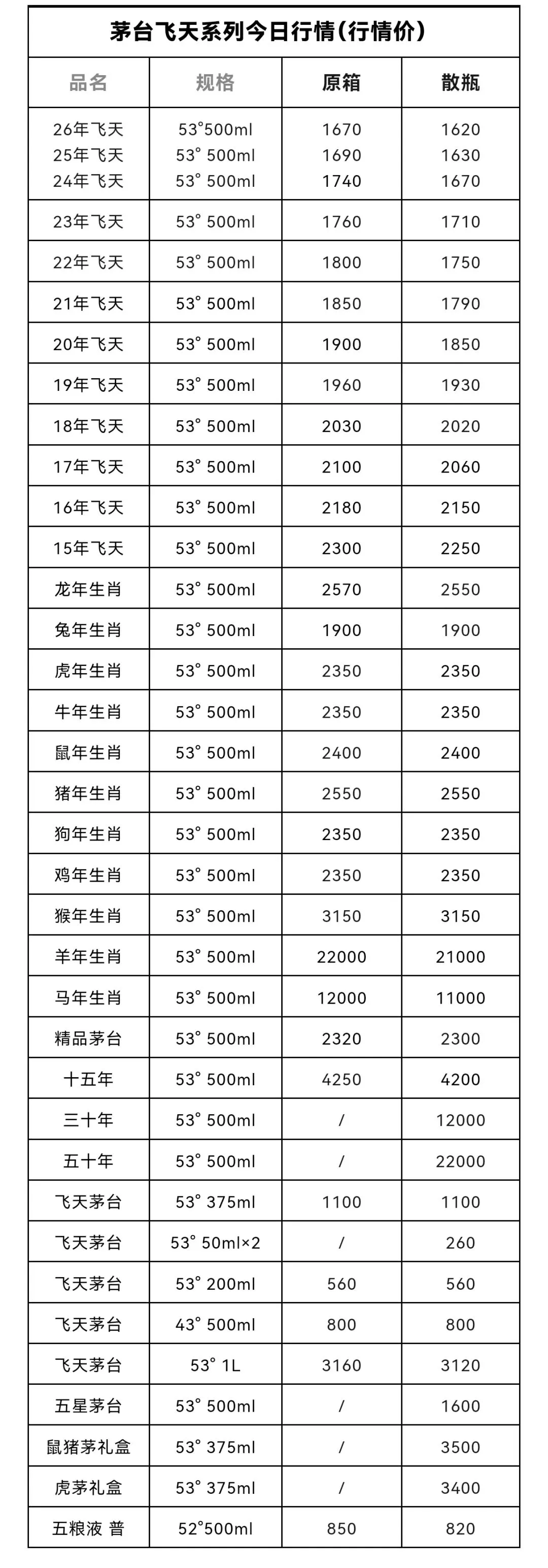 原箱价:指未拆箱茅台,适合收藏或投资,价高于散瓶很多