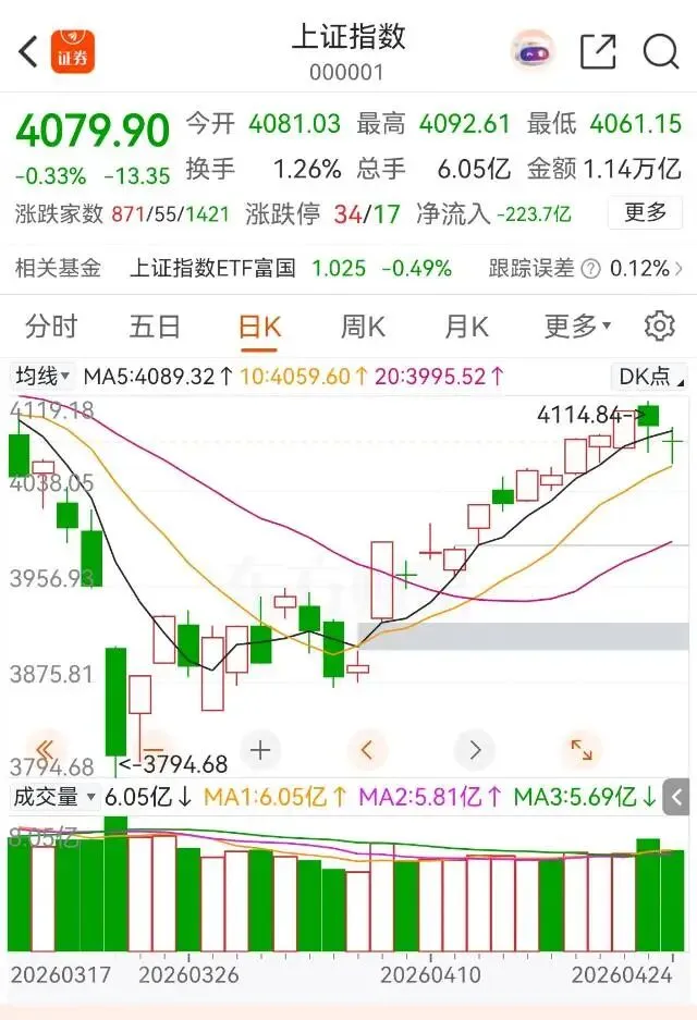 最低4051.69点在甲子日开盘之初,最高4114.84点在丁卯日早盘。