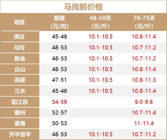 白条鹅价格基本平稳,未来行情预计继续保持平稳。