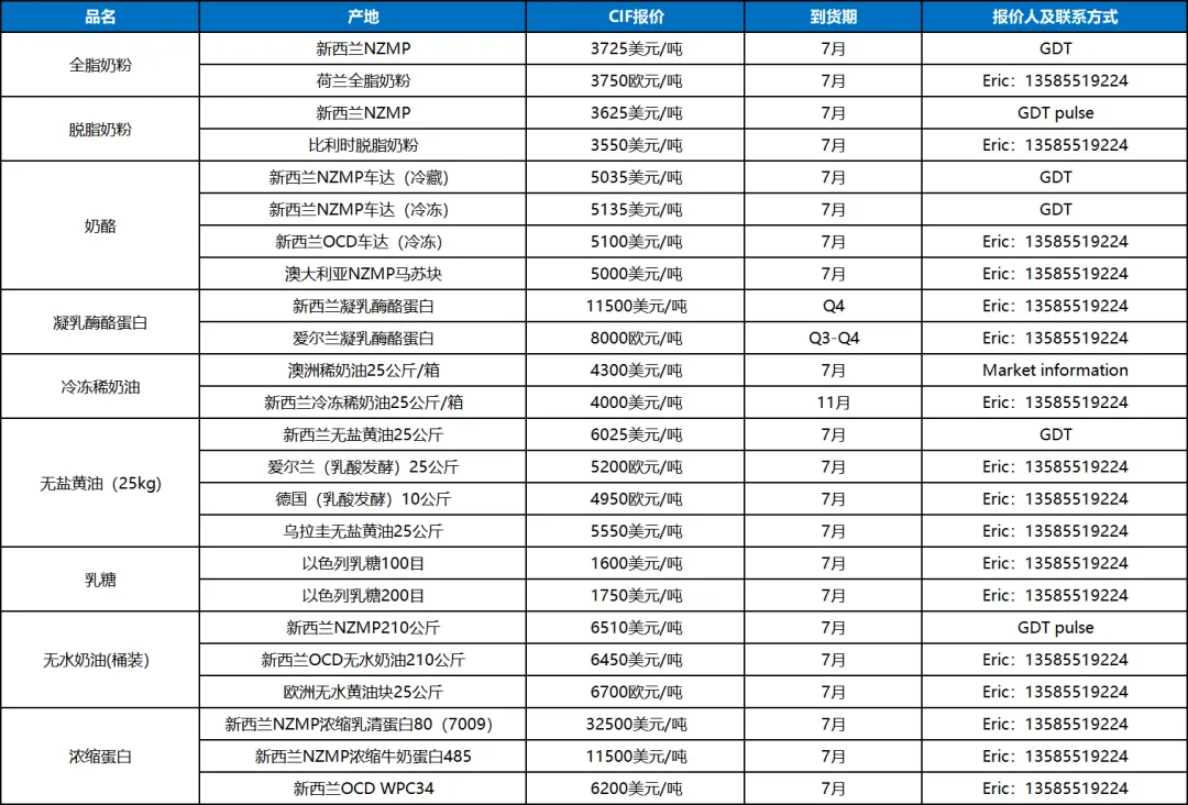 无水奶油:进口无水奶油价格下行,尤其南方主要贸易商再次跳价下行,压制市场价格;国产无水出货不畅,降价求存。奶油芝士:新西兰餐饮奶油芝士价格高企,各非主流产区进口奶油芝士开始试探性报价。