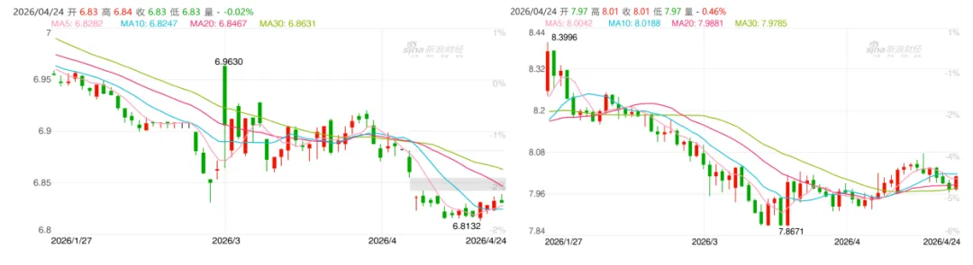 1. 中国经济数据:(1)统计局公布:据对全国流通领域9大类50种重要生产资料市场价格的监测显示,2026年4月中旬与4月上旬相比,23种产品价格上涨,26种下降,1种持平,其中受原油价格回调影响,化工产品,油气能源下挫较多,而农业生产资料和有色金属表现较好。2. 美/欧/日/韩经济数据:(1)至4月18日当周初请失业金人数:21.4万人(预期21.2万,前值20.8万);(2)4月标普全球制造业/服务业PMI初值:制造业54.0、服务业51.3、综合52.0(均好于预期);(3)4月密歇根大学消费者信心指数终值49.8,预期48.5,初值47.6,略好于预期。