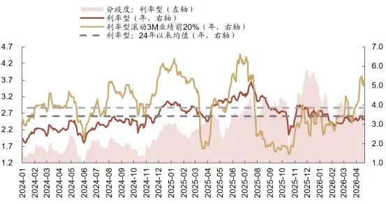 2026年超长特别国债发行计划与2025年差别不大,总规模维持不变的同时,数量上仅在10月多发一只30年。发行节奏上,4-10月里,4月发行2只,5月、8月、9月分别发行4只,供给规模小幅抬升;其他月份发行3只。考虑一般国债发行以及整体到期节奏后,5月份国债净融资在8800亿左右,为近月较高月份。不过由于地方债当前供给节奏仍然偏慢,整体政府债净融资5月虽有抬升,但仍在1.34万亿左右中性水平,相对历年高点偏弱。