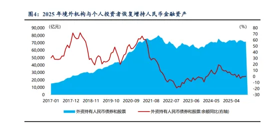 综合来看,近期人民币汇率持续攀升是多重因素共同作用的结果:外部层面,美元指数走弱为人民币升值创造了有利环境;内部层面,中国经济基本面稳健、外贸顺差扩大和人民币资产吸引力提升构成了坚实支撑。我们认为,未来一段时间随着地缘风险边际减弱,外部环境回稳态势有望延续,出口维持稳健,扩内需政策也将进一步发力显效,再加上国内权益吸引力,人民币汇率或延续波动下小幅升值趋势。
