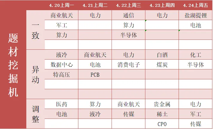 4 月商业航天、军工等低空相关题材已有异动,政策落地后容易形成 “预期 - 兑现” 的资金接力,且低位筹码充足,有走出持续性行情的潜力。