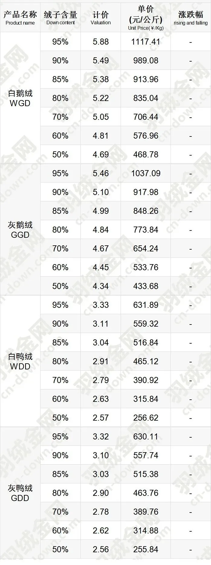 《挥七轩》2026年4月27日羽绒价格行情