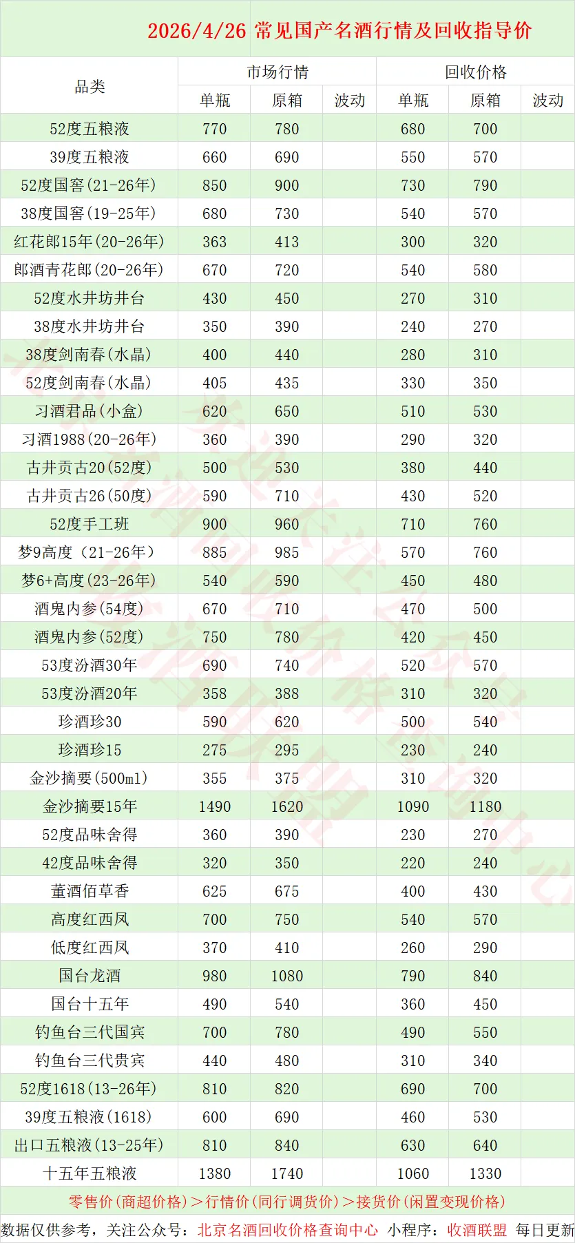 也称之为同行调货价,酒商之间互相调货的价格,市场价与回收价均以行情价为基础。
