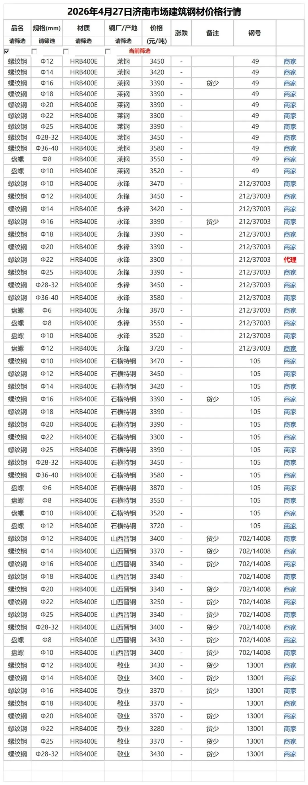 >4月27日市场建筑钢材价格行情