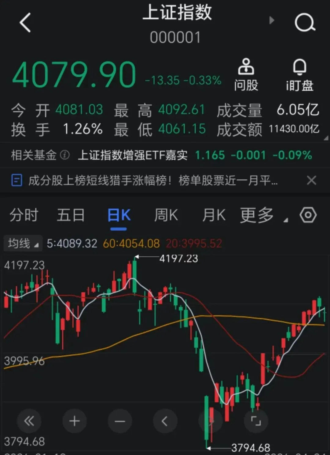 1.上证行情技术分析: