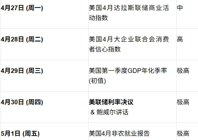 操作建议:下周集齐突发安全事件、超级财报周、美联储利率决议及非农数据,市场极易出现宽幅震荡。建议投资者关注黄金及石油类对冲资产,并警惕高杠杆头寸风险。