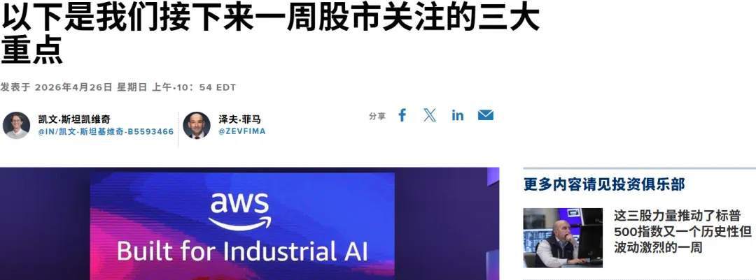 据4月26日最新市场数据分析,下周(4月27日起)美股将进入极其关键且动荡一周。标普500和纳指创新高,地缘冲突(经济狂怒行动)与美联储决策共振,预示着市场波动性将加剧。CNBC +1