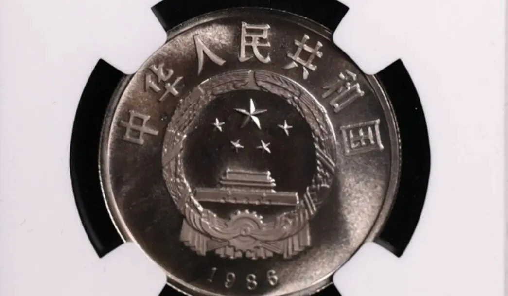 再看背面,图上是咱们国徽下方环了一圈橄榄枝,五角星和天安门压得正当大,按现在说法,这构图叫庄重大气,其实过去就是讲究个“正儿八经”,币边一圈齿轮纹路,摸着手感利索,边沿的高光跟小刀割过似的,1986的数字刻在下面,位置挨得密,字体比新币要瘦些。