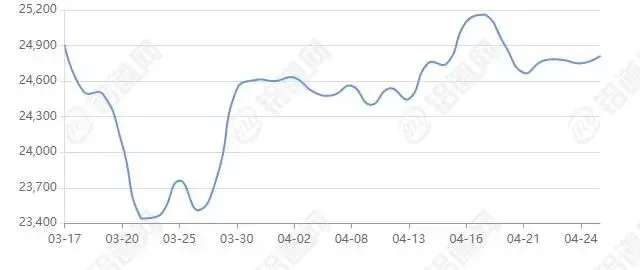 2026年04月27日长江有色金属现货交易行情 价24810涨跌+60,最低24790,最高24830,前三日均价24766,前五日均价24776。仅供参考,风险自担。