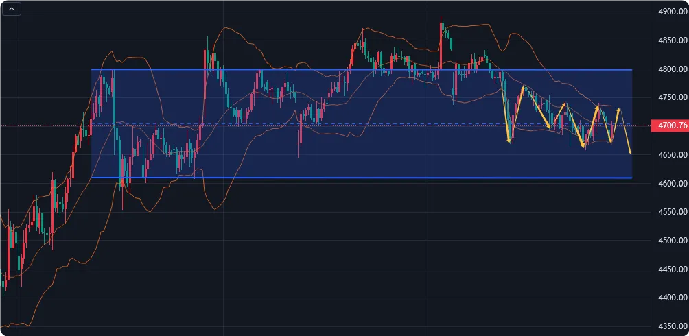 - 亚、欧盘大概率4670–4730区间宽幅震荡修复