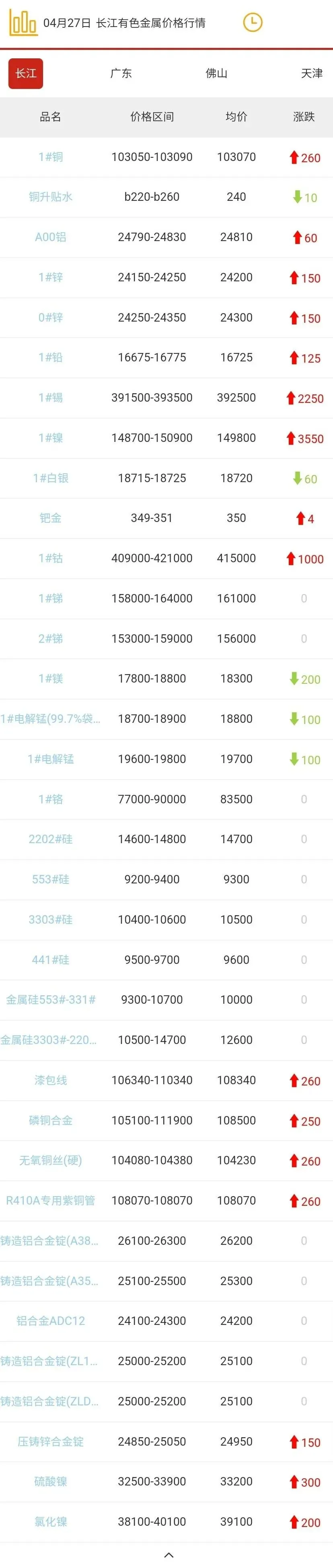 >2026年04月27日有色金属现货行情