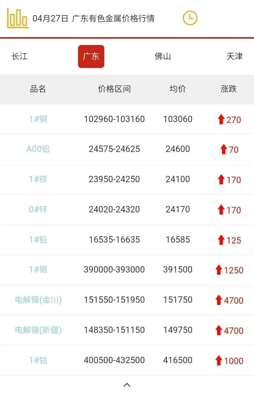 广东有色金属价格行情