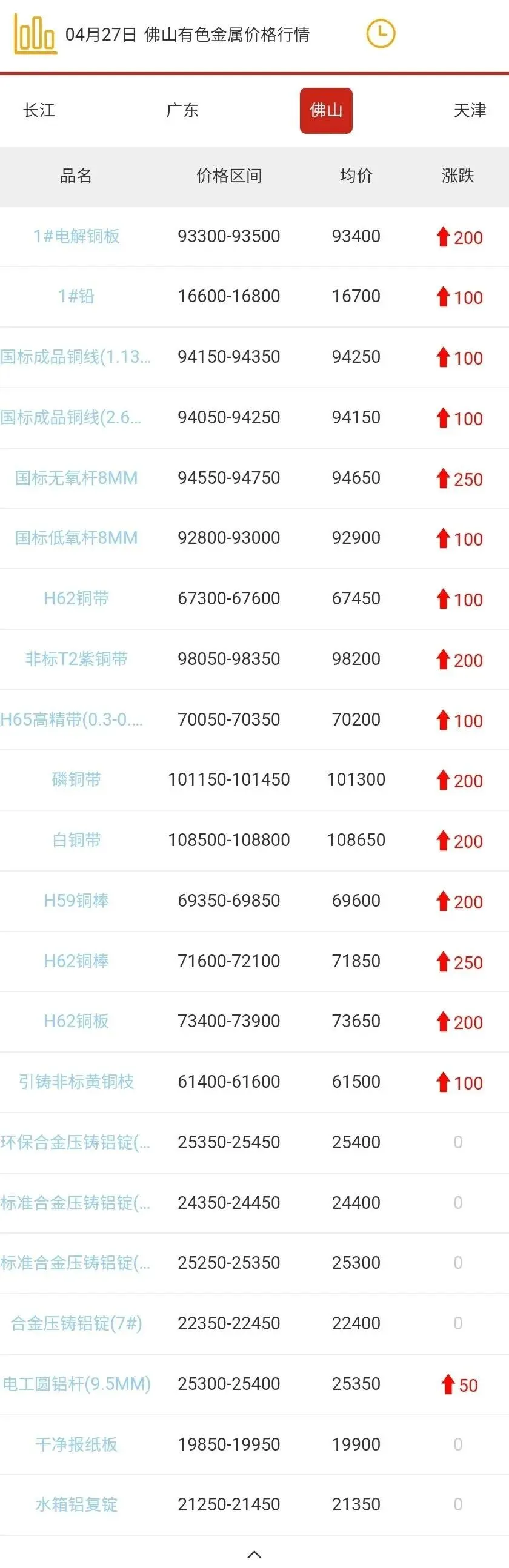 佛山有色金属价格行情