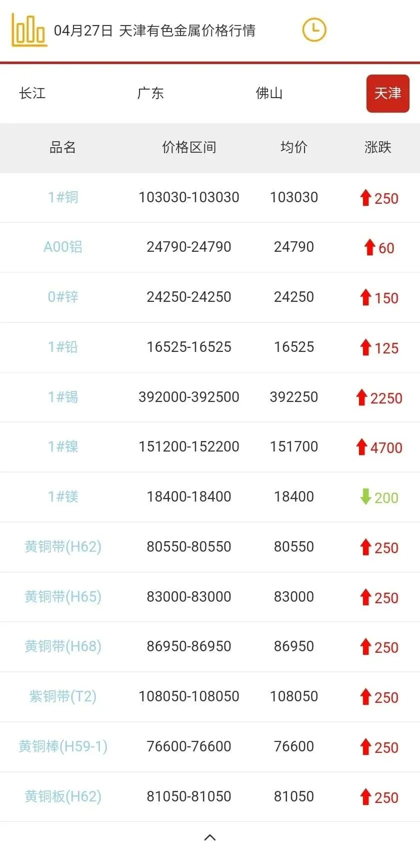 天津有色金属价格行情
