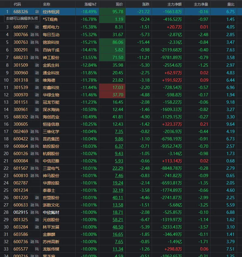 今天盘面不用多废话,基本一眼穿的周末文章的现实表达:除了科技蓝筹,别处全是跌跌不休,一片绿油油,血流成河。比如你看这种撕裂和冰火!