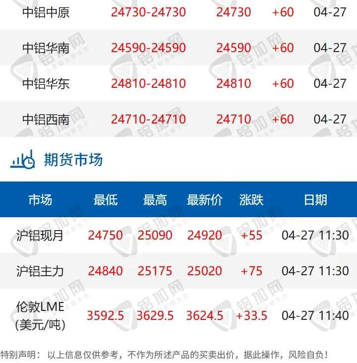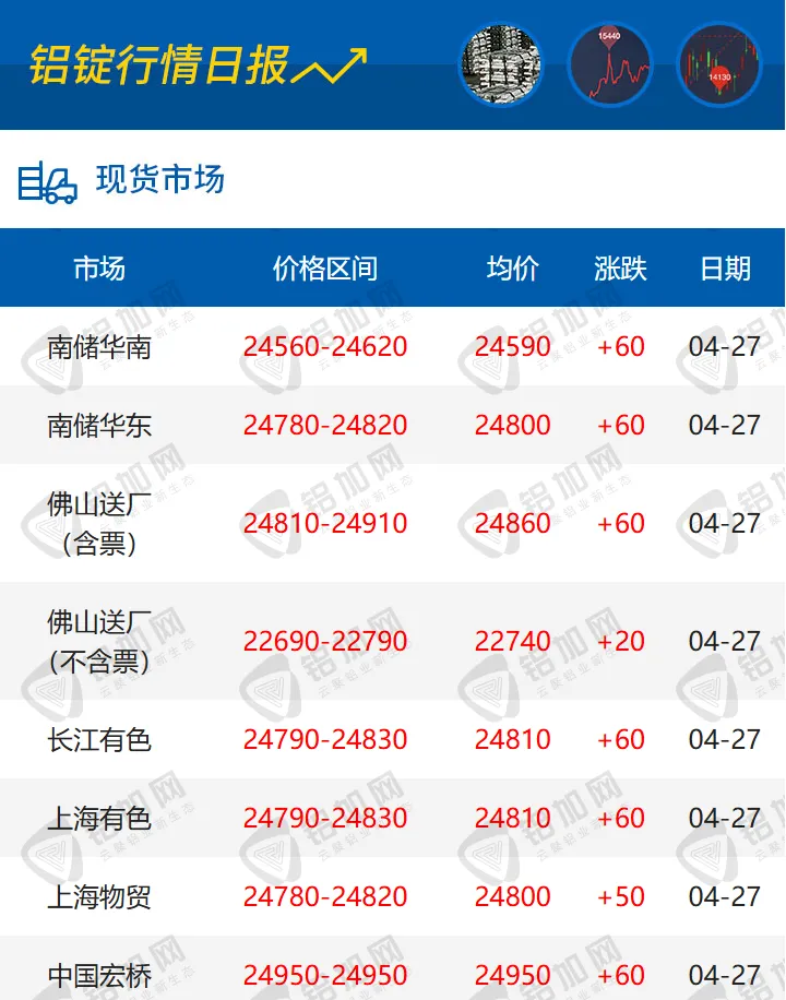 涨!04.27 每日铝锭行情报价