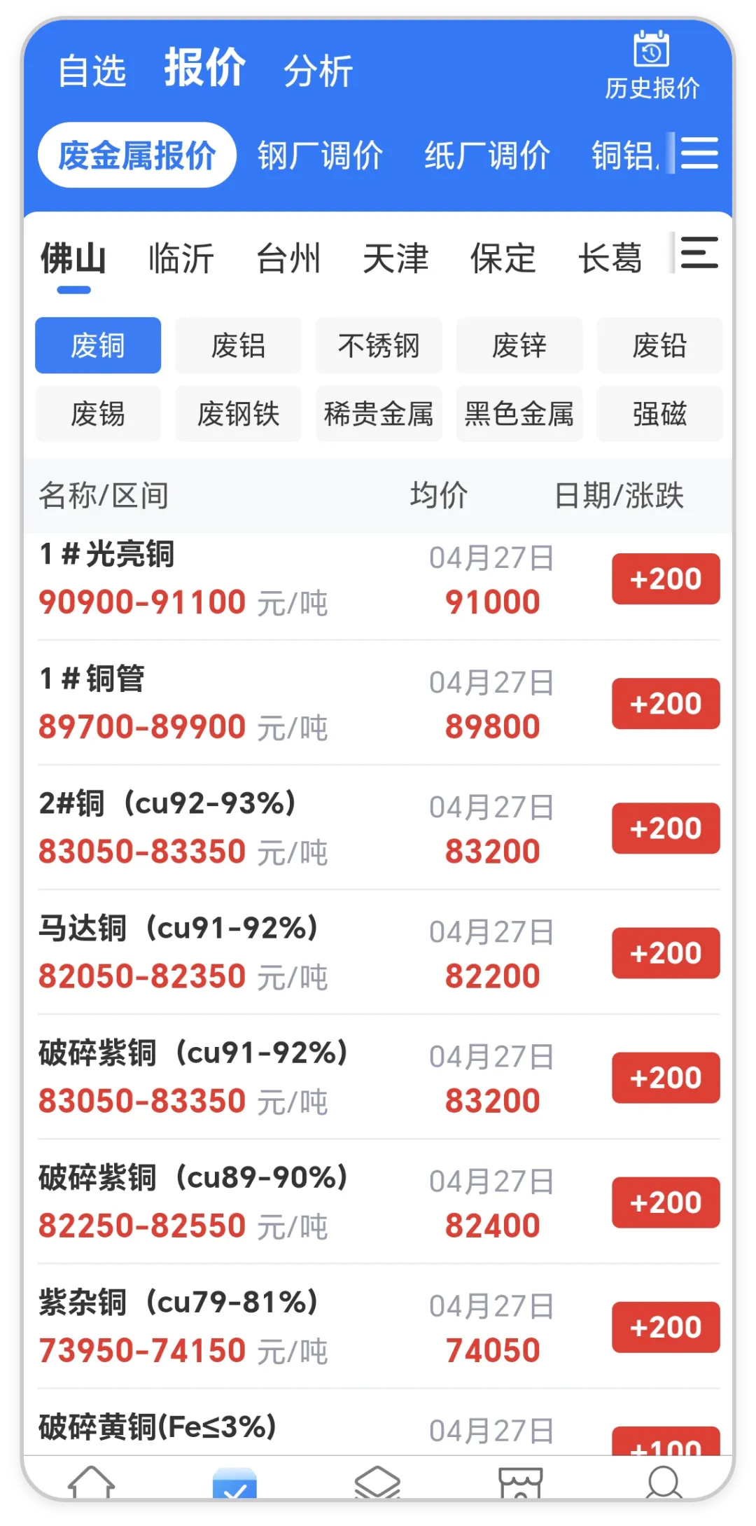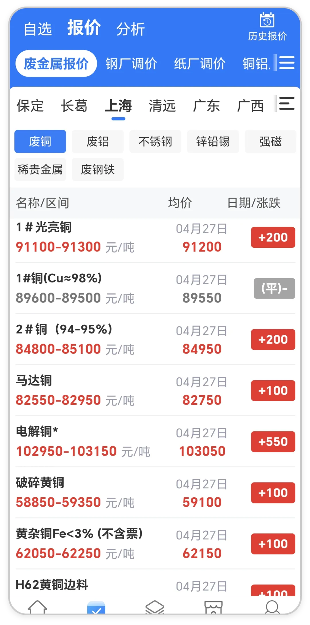 >废铜小幅上涨!全国废铜最新价格行情(4月27日)