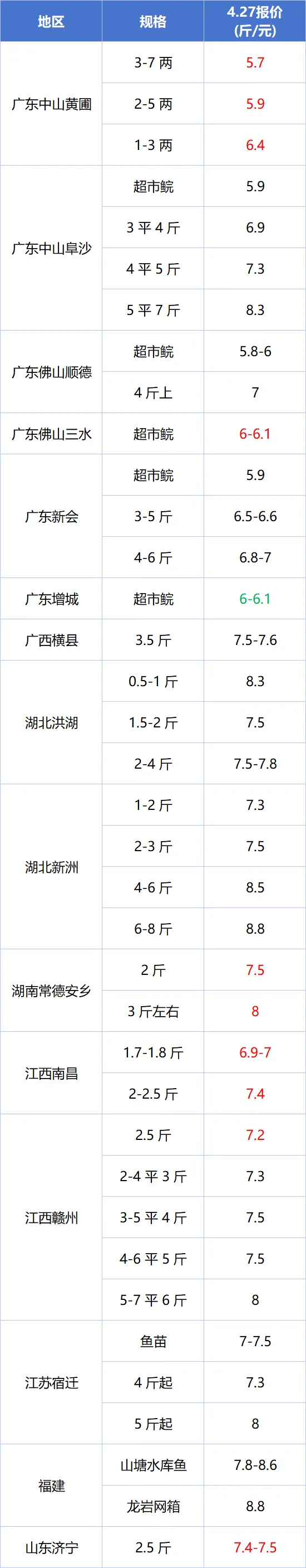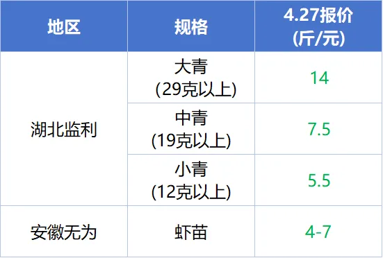 2026年4月27日多品种塘口报价|南美白对虾、罗氏沼虾、淡水澳龙、小龙虾、草鱼、鳜鱼、加州鲈、黄颡鱼、生鱼、鳗鱼、大黄鱼、牛蛙等,覆盖多品类,一站式查阅。