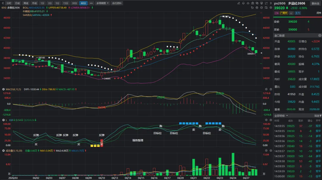 二、多晶硅 2606:破位下跌,不抄底、不抢反弹,管住手就是赚