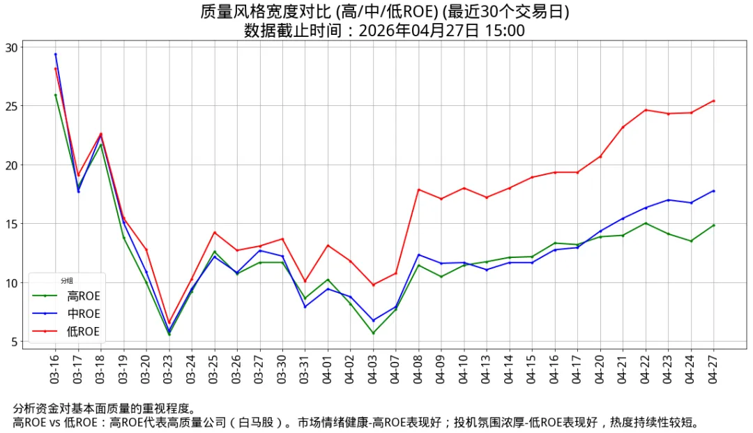 🚨风险提示🚨:价格上涨但宽度萎缩,呈现量价背离;宽度极低(15.0%),缺乏资金关注